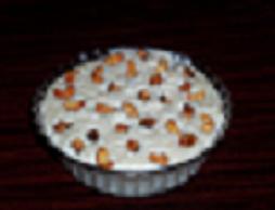 Ingredients : ~ Rice and Milk [ ratio of 2 litre milk : 1 cup of rice ] ~ Luwang and Alaichi powder for taste ~ Sugar as desired ~ Unsalted fried cashews(kaju) ~ Coconut(Nariwal) pieces for extra taste ~ One or two Bay Leaves (Tej Patta) for flavour Preparation : ~ Mix rice with ghee before few hours of preparing the dish ~ At the time of preparing, first boil milk as per the ratio ~ Put the rice in the milk, add luwang and ailaichi's powder, Bay Leaves(Tej Patta) and sugar ~ Keep on boiling and stirring in low heat until it starts thickening ~ When it is about to be cooked, add fried cashews (kaju) and coconut pieces ~ When cooked properly, take the kheer out and serve it either hot or frozen as per the taste of the person Serving : Kheer is mainly served as desert in the parties or in gathering but during holy rituals like pujas this is taken as the main item for food. When used as main item, Kheer can be served along with pickled or some curry for better taste. Religious importance : ~ This is an inseperable part of food in the Nepalese death anniversary puja. ~ This is prepared in every religious pujas performed at our homes. ~ This is prepared as a main item in the ladies' festival of Teej as dhar. ~ Nepalese believe that it is a must to take Kheer on the 15 th of Shrawan every year. Taste: This dish usually has sweet taste because of the excessive use of sugar. So whenever we say kheer we remember it for its sweetness. | ![]()
